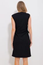 🛍 Trend Alaçatı Stili Kadın Siyah Bisiklet Yaka Outcut Kesim Örme Elbise ALC-X11865