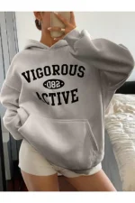 Trendgar Vigorous Active Baskili Unisex Kanguru Cepli Kapusonlu Sweatshirt Hoodie Sweat