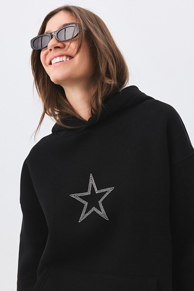 🛍 Unisex Star Stroke Tas Baskili Sweatshirt Siyah