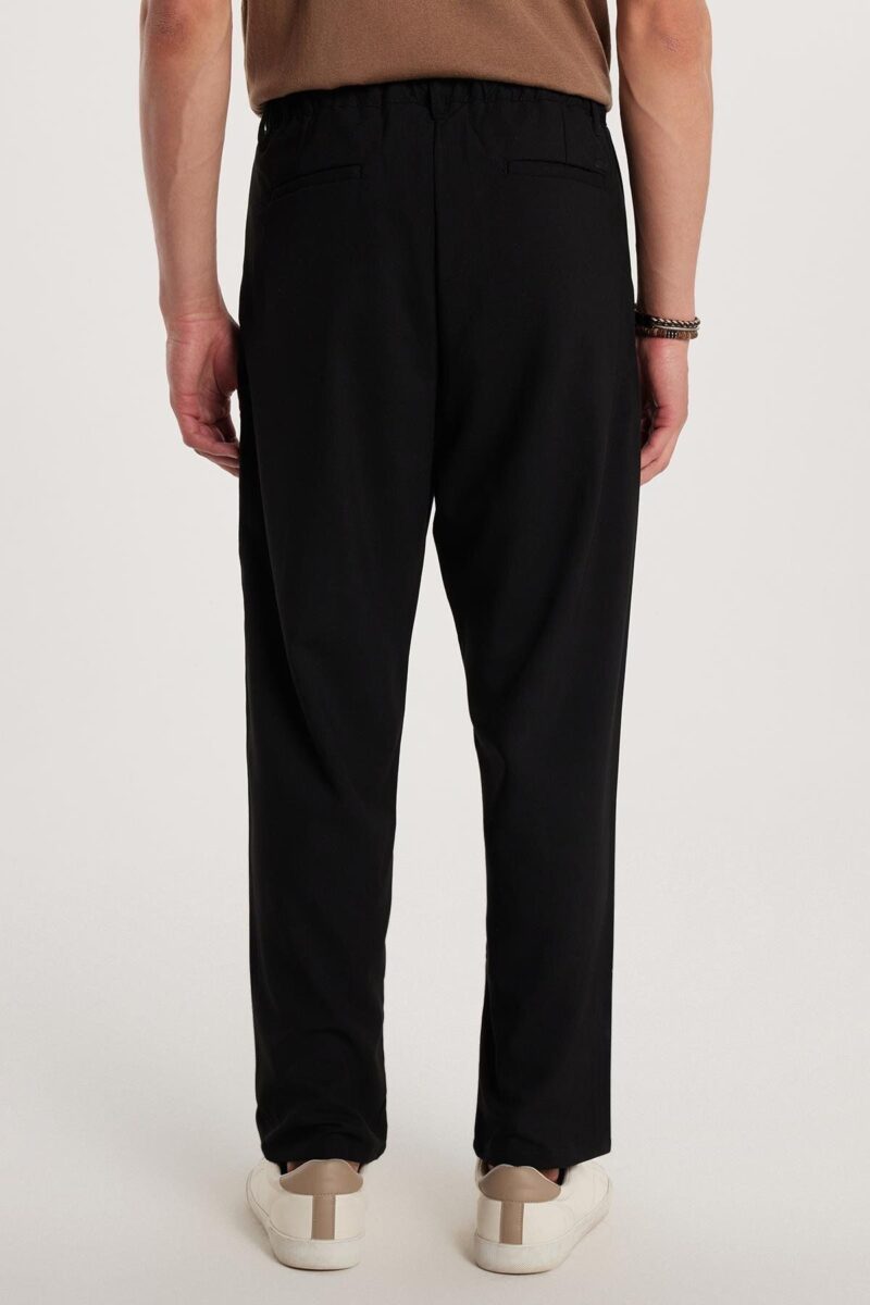 🛍 Tudors Erkek Çift Pileli Beli Lastikli Rahat Kesim Bol Paça Baggy Siyah Pantolon