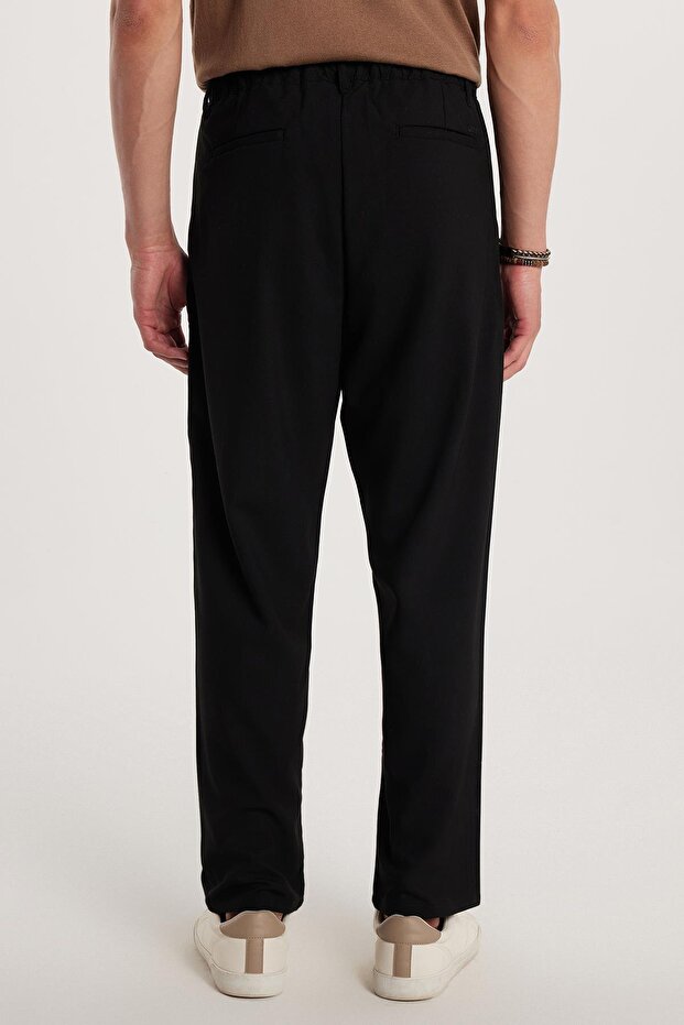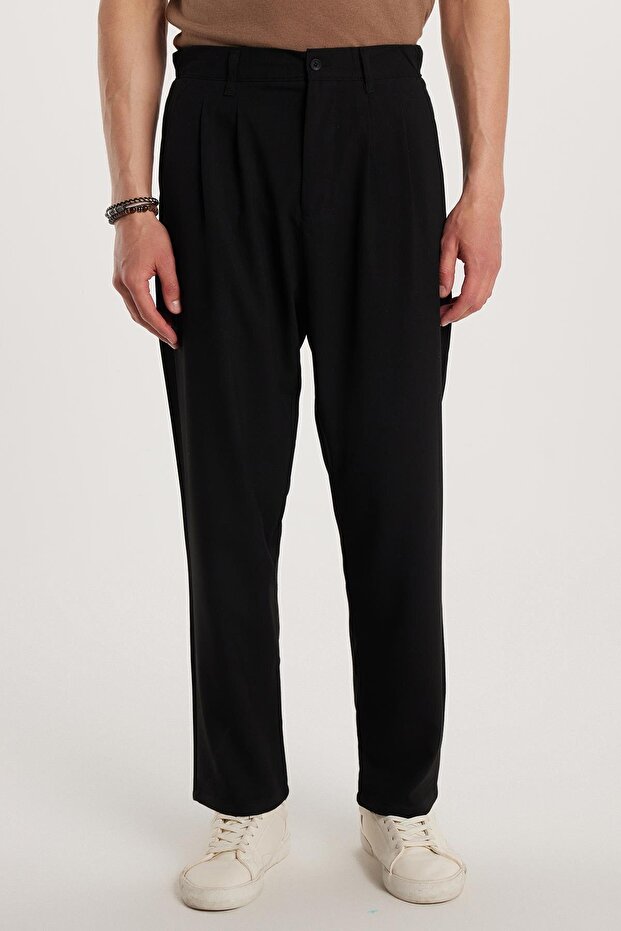 Tudors Erkek Regular Fit Cift Pileli Beli Lastikli Rahat Kesim Bol Paca Baggy Siyah Pantolon