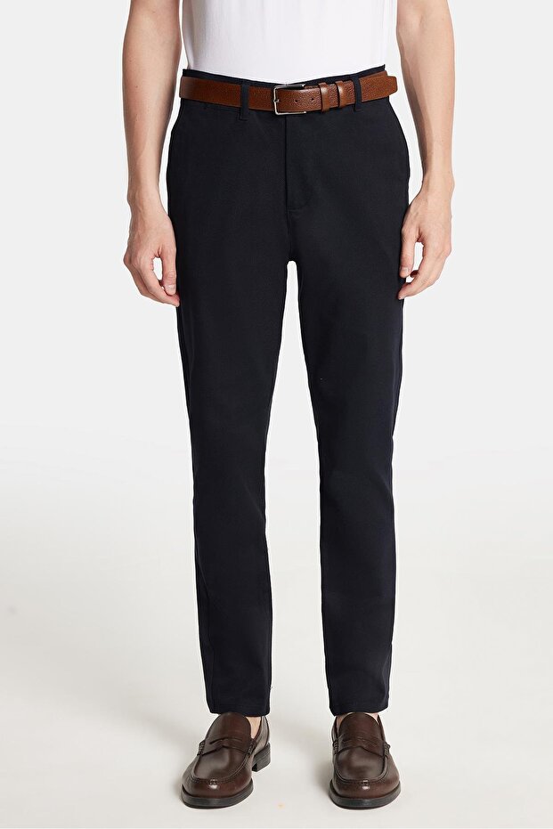 Tudors Erkek Slim Fit Chino Esnek Yandan Cepli Onu Fermuarli Pamuklu Dokulu Lacivert Pantolon