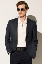 🛍 شلوار مردانه باریک مردانه چینی انعطاف‌پذیر با زیپ زیپ دار نخی با بافت آبی سرمه ای