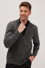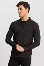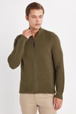 🛍 Tudors Erkek Standart Fit Normal Kesim Desenli Yarım Balıkçı Yaka Fermuarlı Bej Hırka
