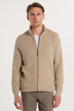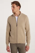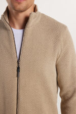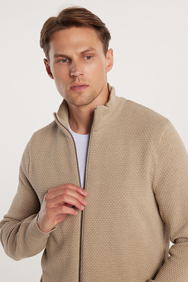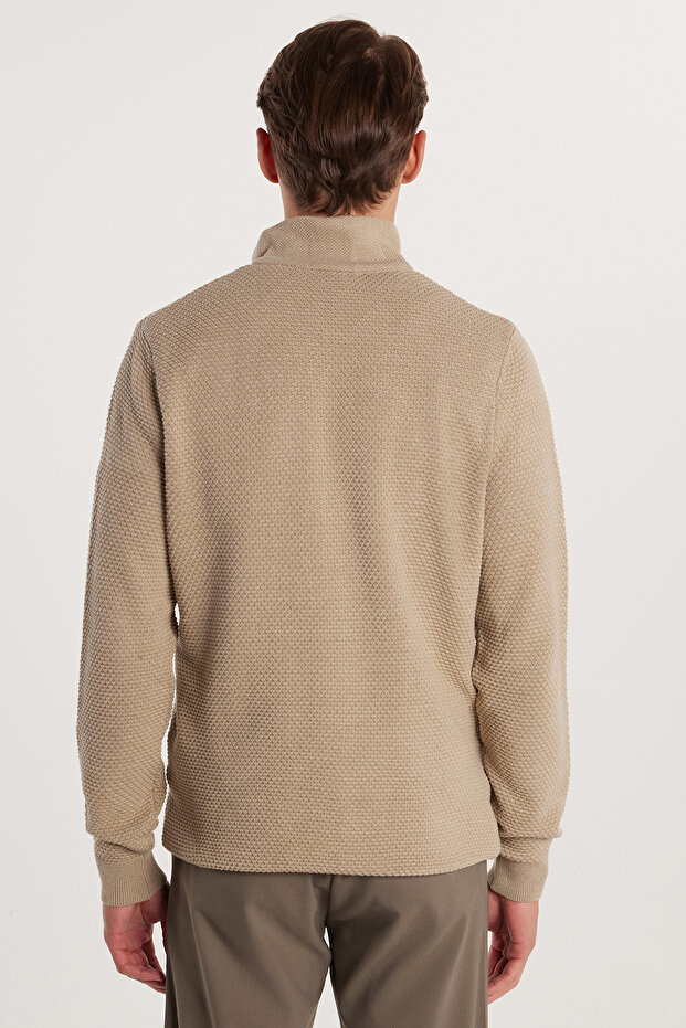 Tudors Erkek Standart Fit Normal Kesim Desenli Yarım Balıkçı Yaka Fermuarlı Bej Hırka