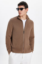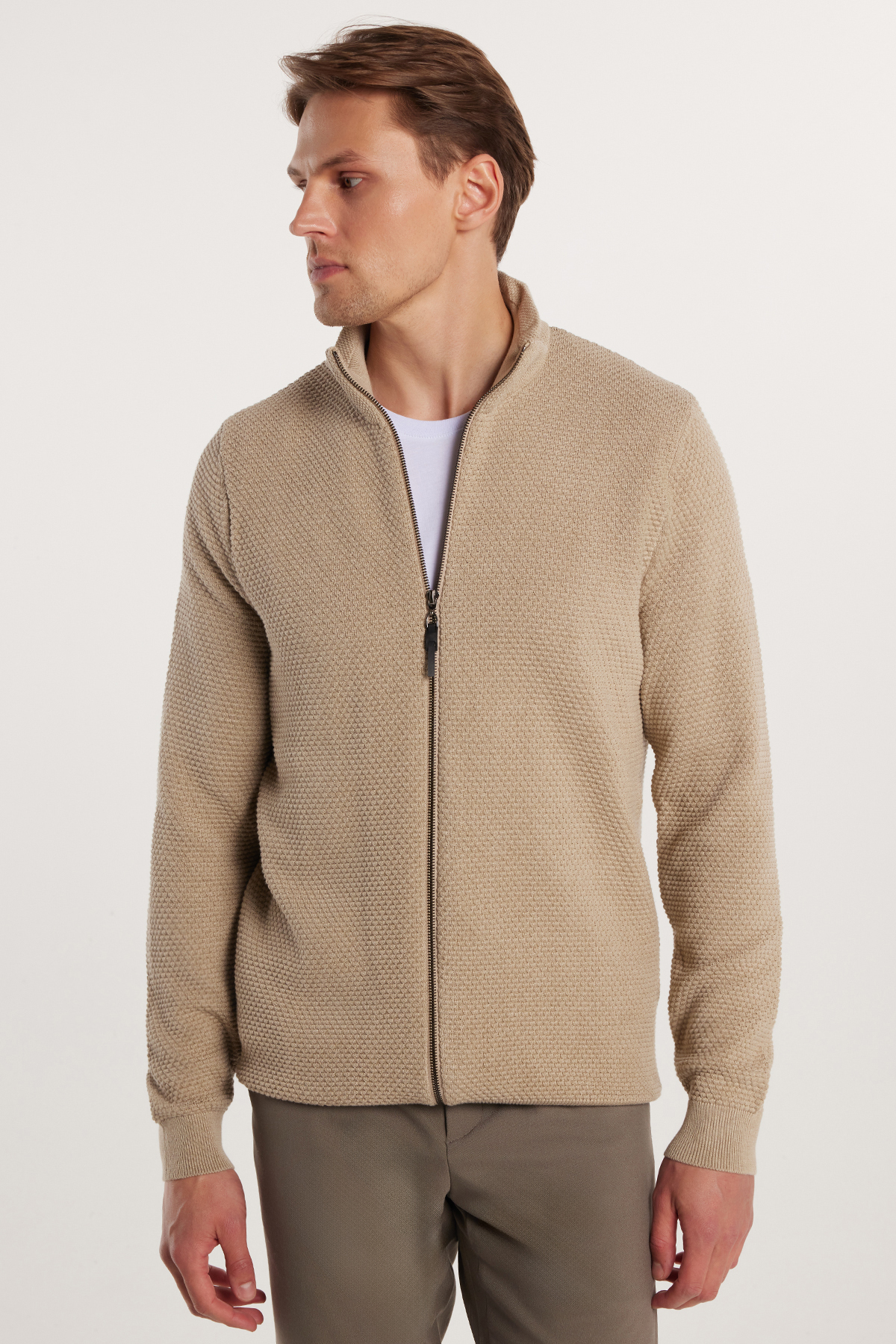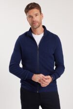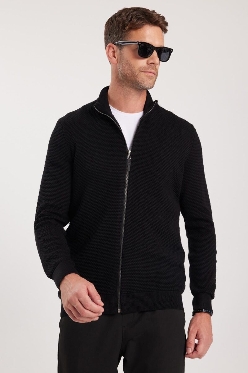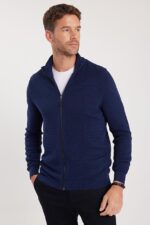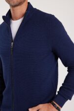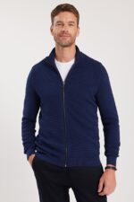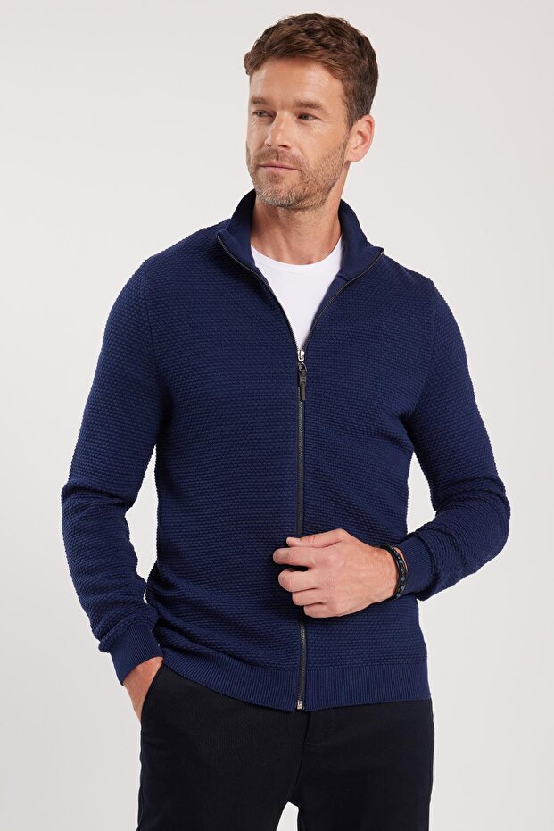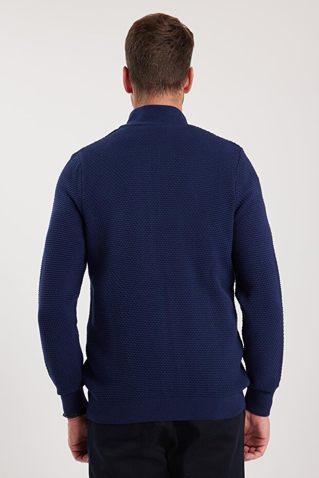 🛍 Tudors Erkek Standart Fit Normal Kesim Desenli Yarım Balıkçı Yaka Fermuarlı Lacivert Hırka