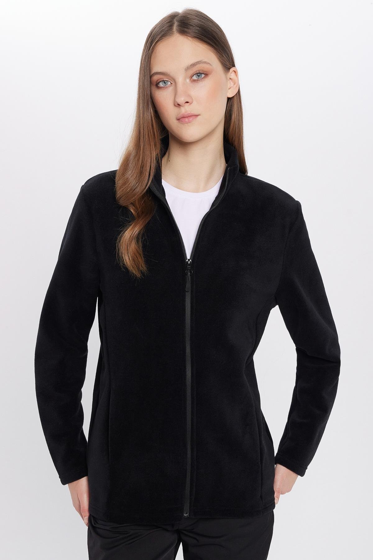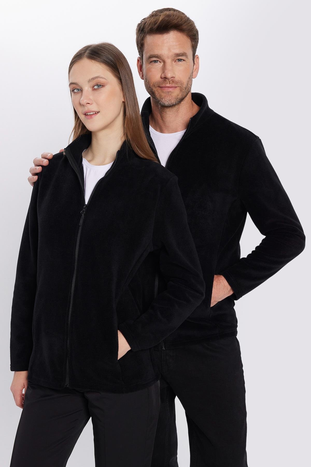 Tudors Unisex Siyah Anti Pilling Tuylenme Yapmayan Standart Fit Tam Fermuarli Soguk Gecirmez Polar Hirka