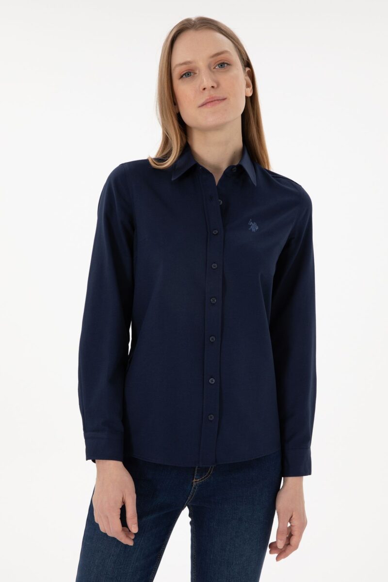 🛍 U.S. Polo Assn. Kadın Lacivert Uzun Kollu Basic Gömlek 50297002-VR033