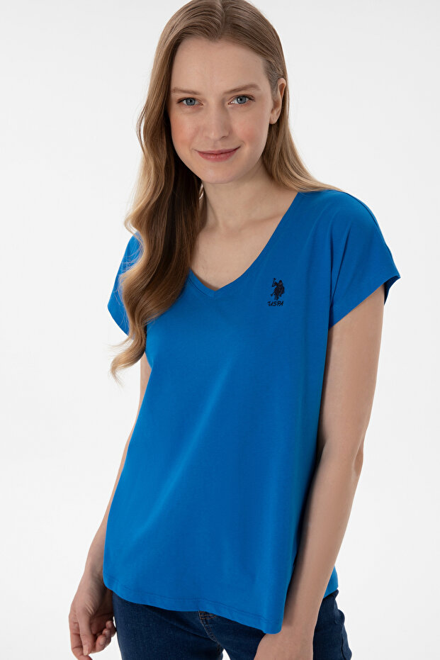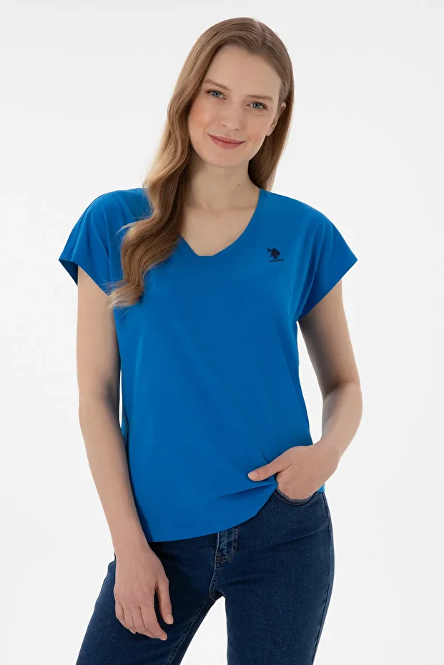 🛍 تی شرت Kadin Kobalt Mavi V Yaka Basic 50305825 Vr077