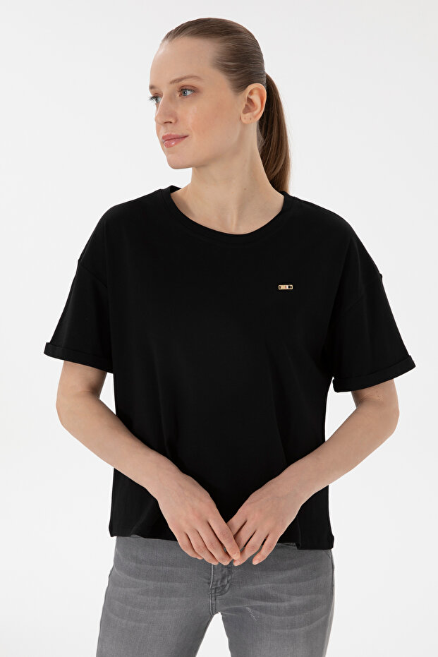 🛍 تی شرت یقه خدمه آستین مشکی زنانه 50305822 Vr046