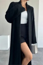 🛍 Vaveyla Kadın Siyah Şal Yaka Uzun Triko Hırka | Oversize & Rahat Model