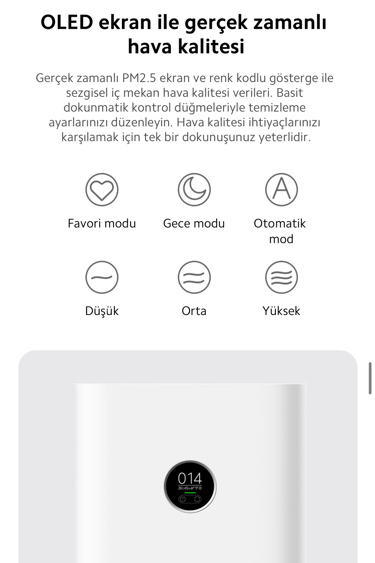 Xiaomi Hava Temizleyici 3U 1 Arada Yuksek Verimli Filtre Sik Tasarim Alerjen Giderme Akilli Kontrol